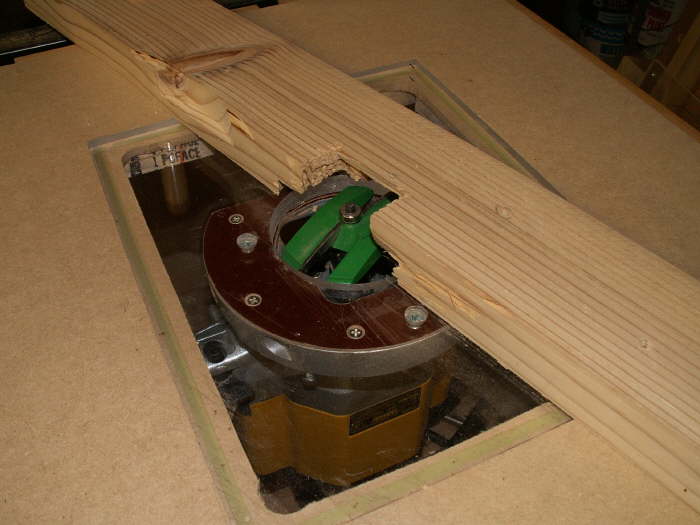 The panel raising bit (14 degree bevel) that will be used along the long edges of the table, top and bottom. (Nice fence, huh? ;-)