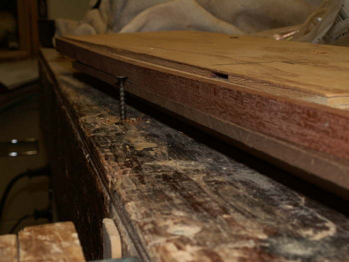 Post cut. The hardboard on the bottom is the template.