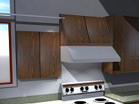 Kitchen Cabinets When we moved into our house, we knew we needed a hood for ventilation. It just took us a few years to get around to it. ;-) I made a few renderings to test out various designs and finishes- luckily we were able to find a laminate that was a close match for our existing (mid ‘70s) cabinets. 3/4 maple plywood, laminate. To see some of that process, click on the picture, or here.